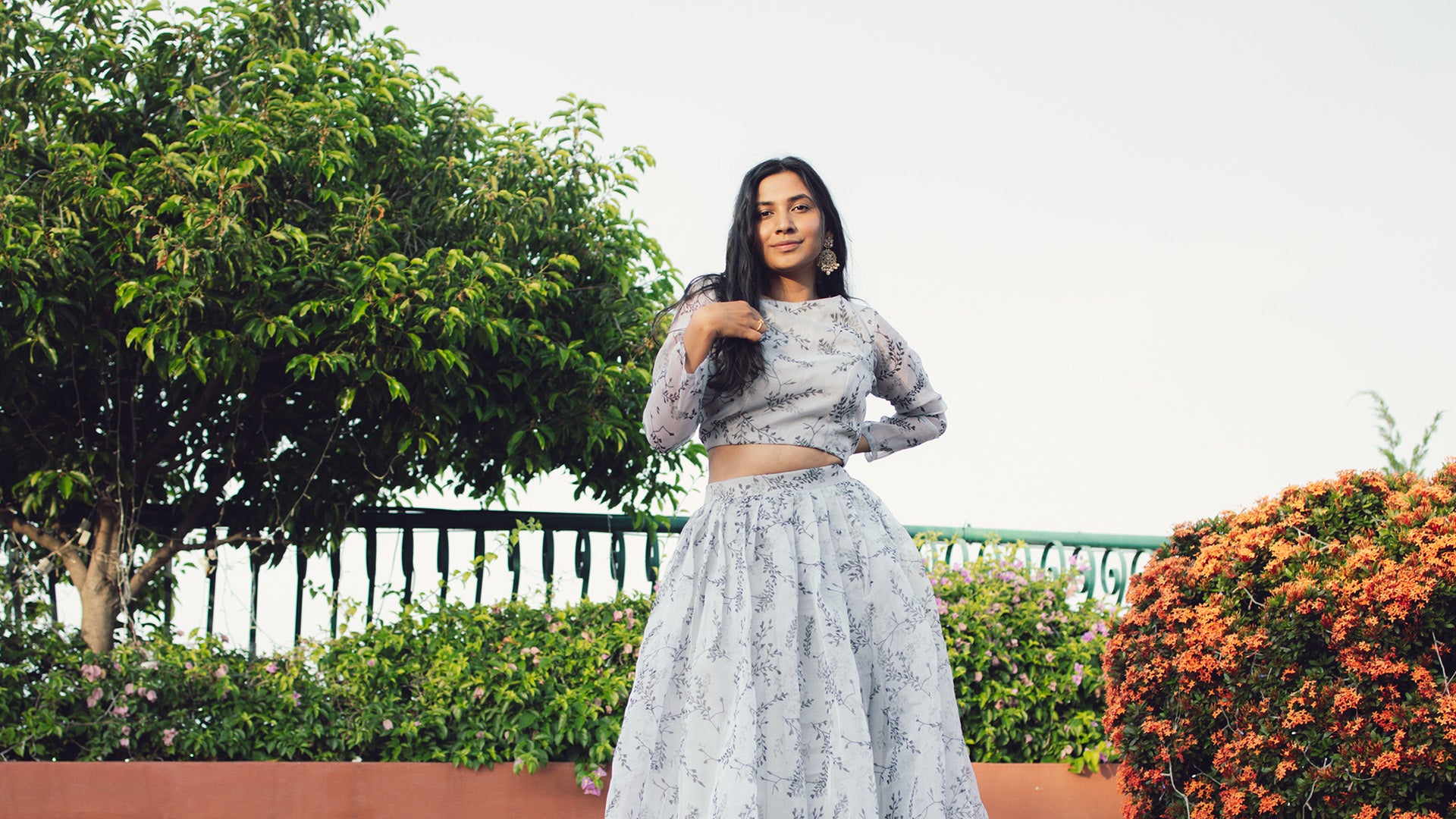 We leave room to size up and down (~4 inches) on all lehengas unless otherwise stated.