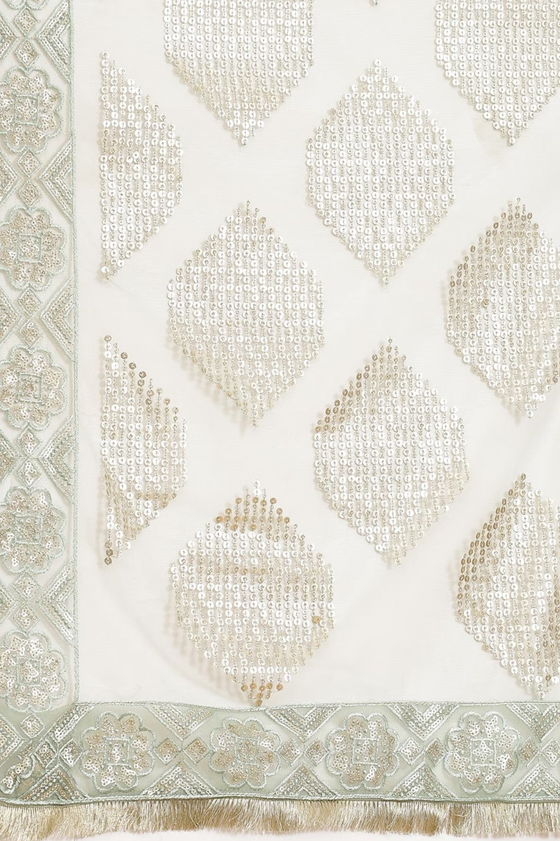 This sage sequin saree is the perfect saree for parties! This net saree features a beautifully embellished border with gold threads.