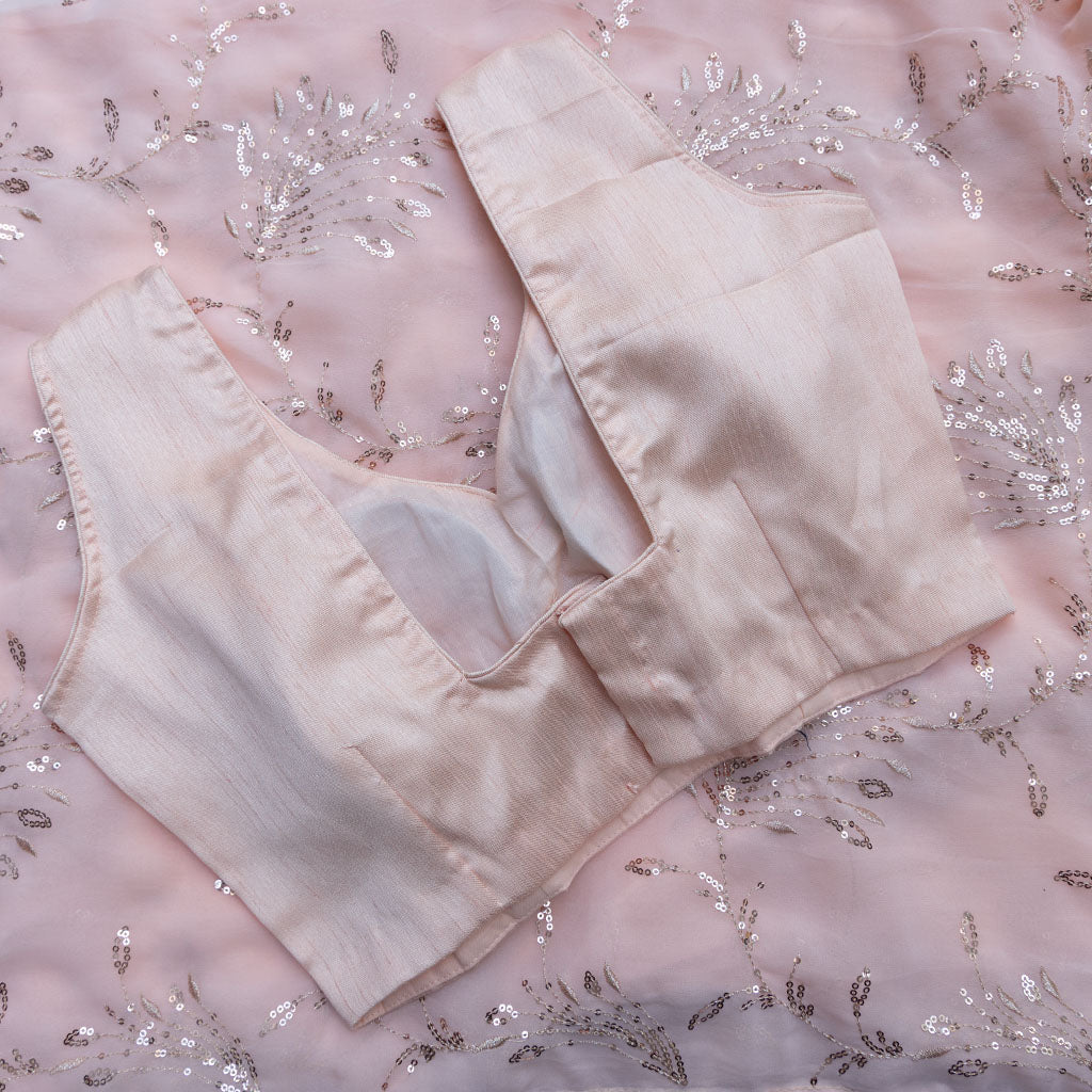 Note:The saree comes with a stitched sleeveless blouse with bust size 36". Blouse can be expanded to bust size 38". Check images below for blouse pattern.