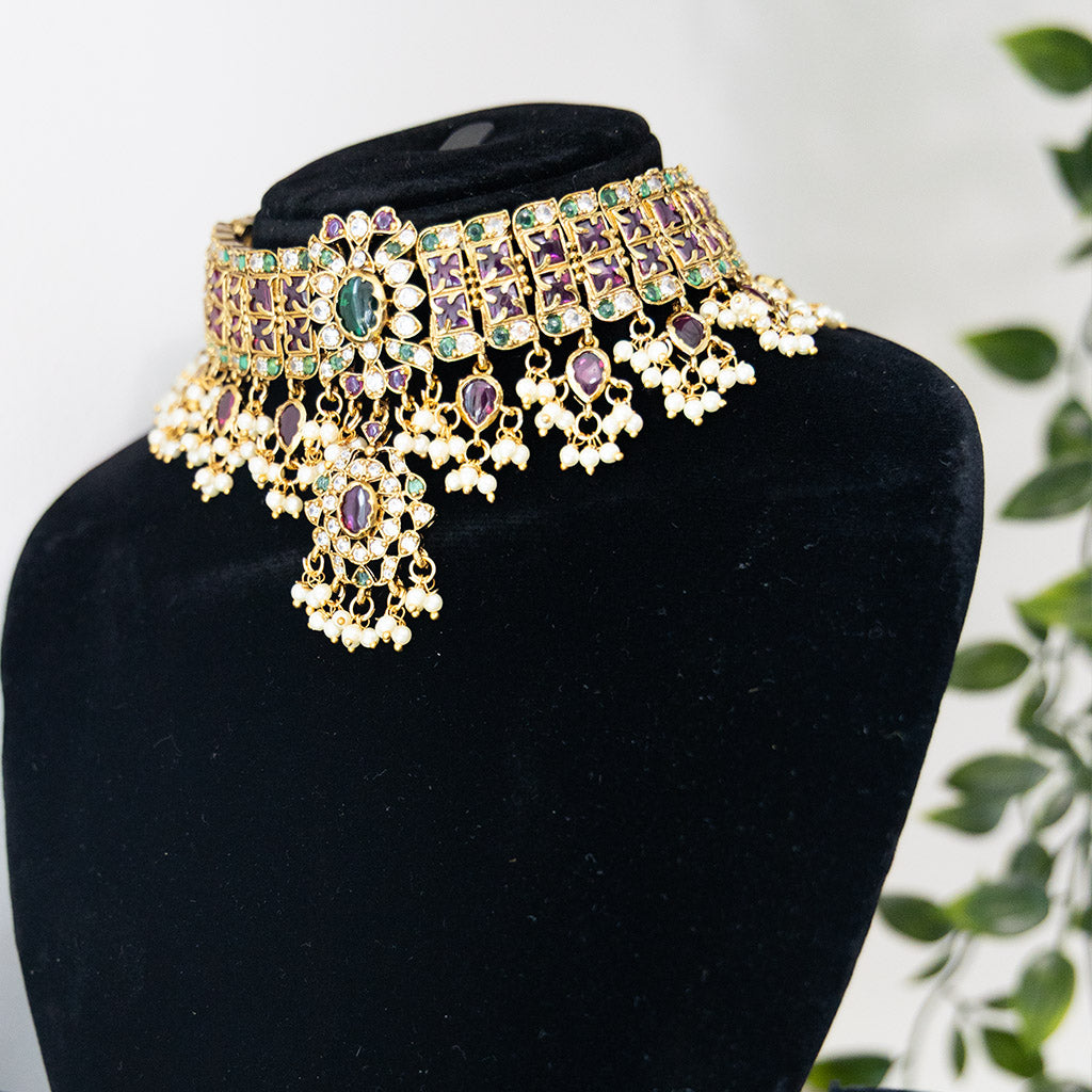Pair this choker set with your next traditional outfit for pure elegance! Set contains a necklace and earrings.