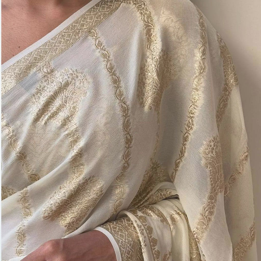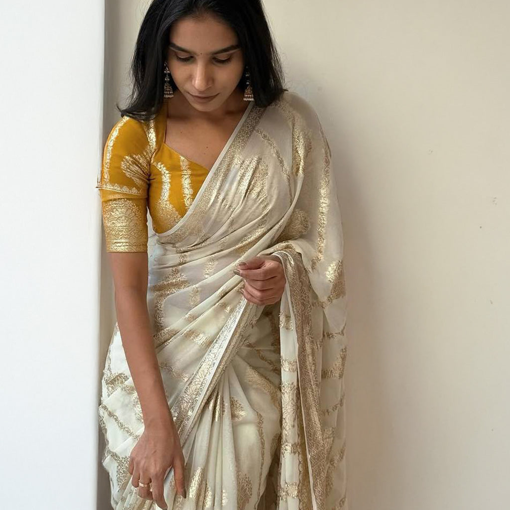 Our best seller- this beautiful georgette saree is perfect for any occasion. Also, how elegant is this colour combo?!
