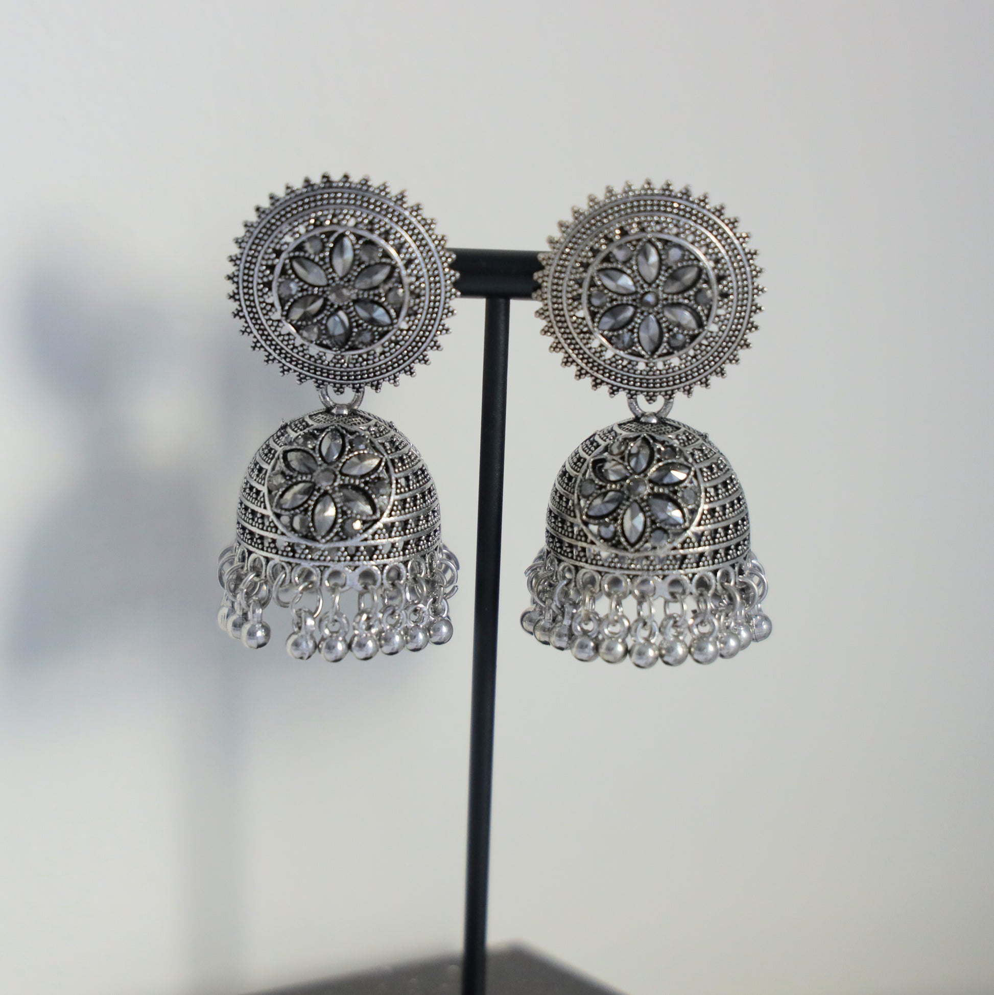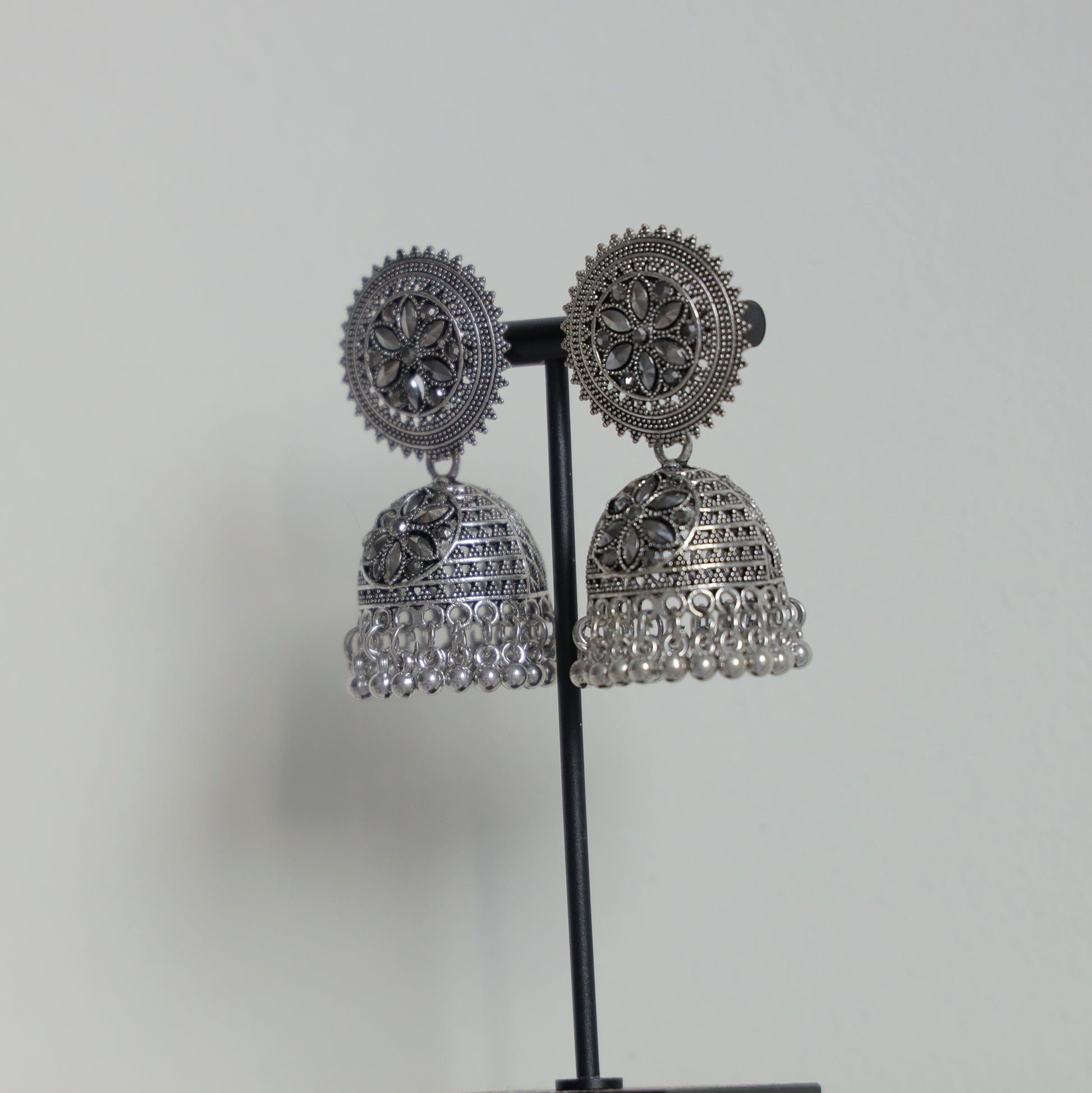 Accessorize your next party wear with these stunning oxidized silver jhumkas!