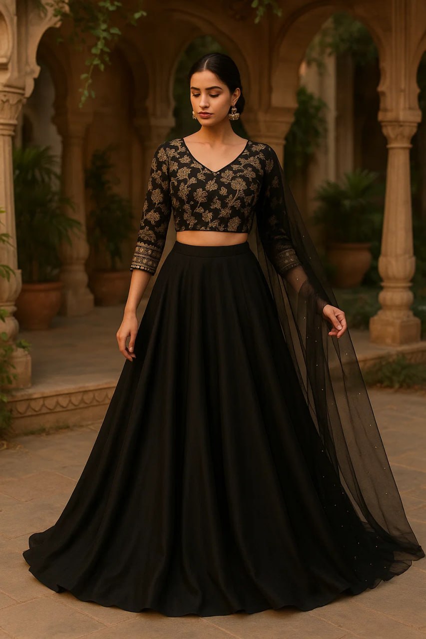 | Blouse Height (in) | Blouse Bust (in) | Skirt Waist (in) | Skirt Height (in) | Dupatta Height (in) | Dupatta Width (in) |
