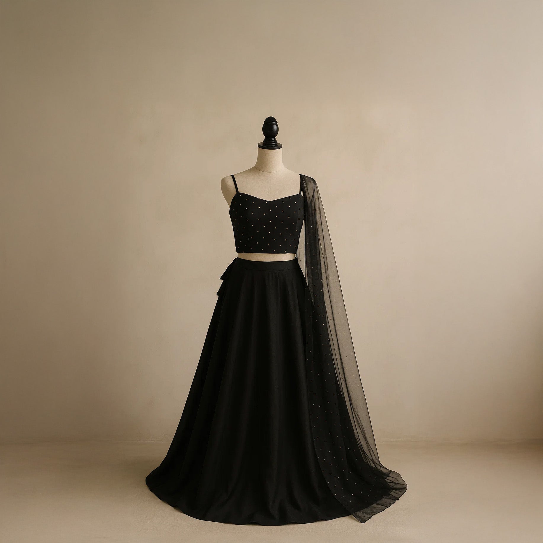 Composition: Soft organza skirt, padded blouse and net dupatta