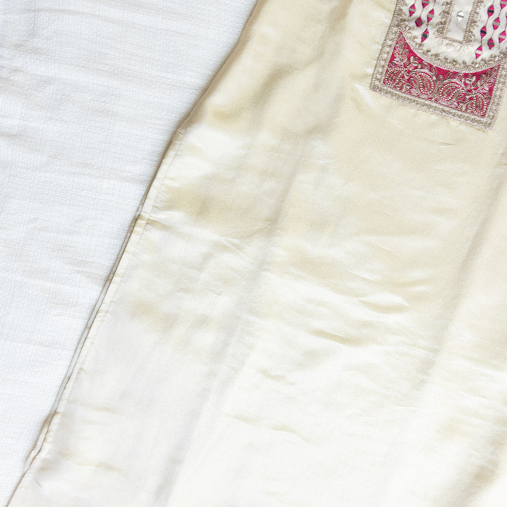 This elegant 3-piece churidar set, features a straight cut top with side slits. The matching floral dupatta beautifully complements the look, adding a pop of colour. Crafted from a comfortable cotton material, this outfit is perfect for both casual outings and special occasions.